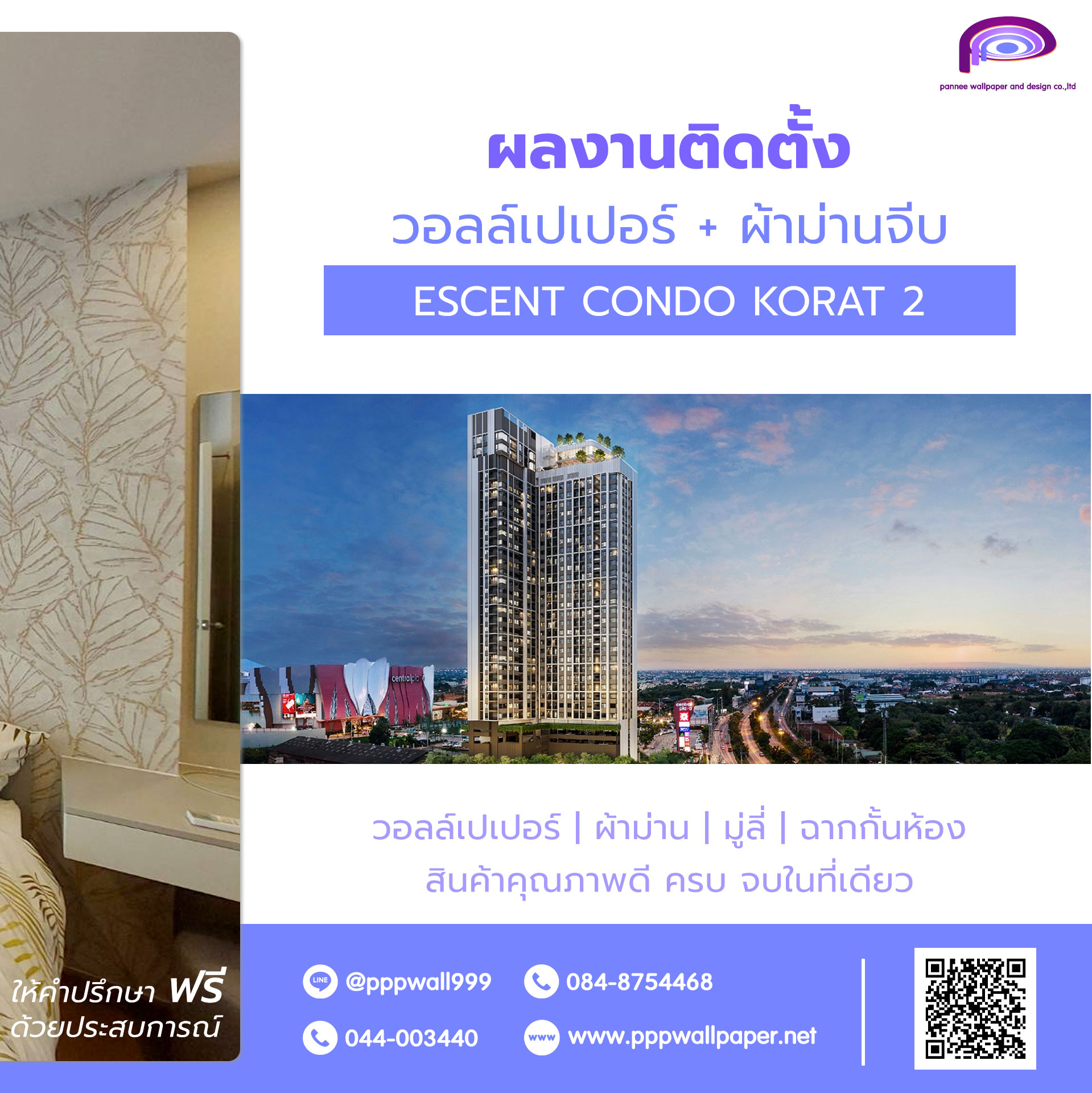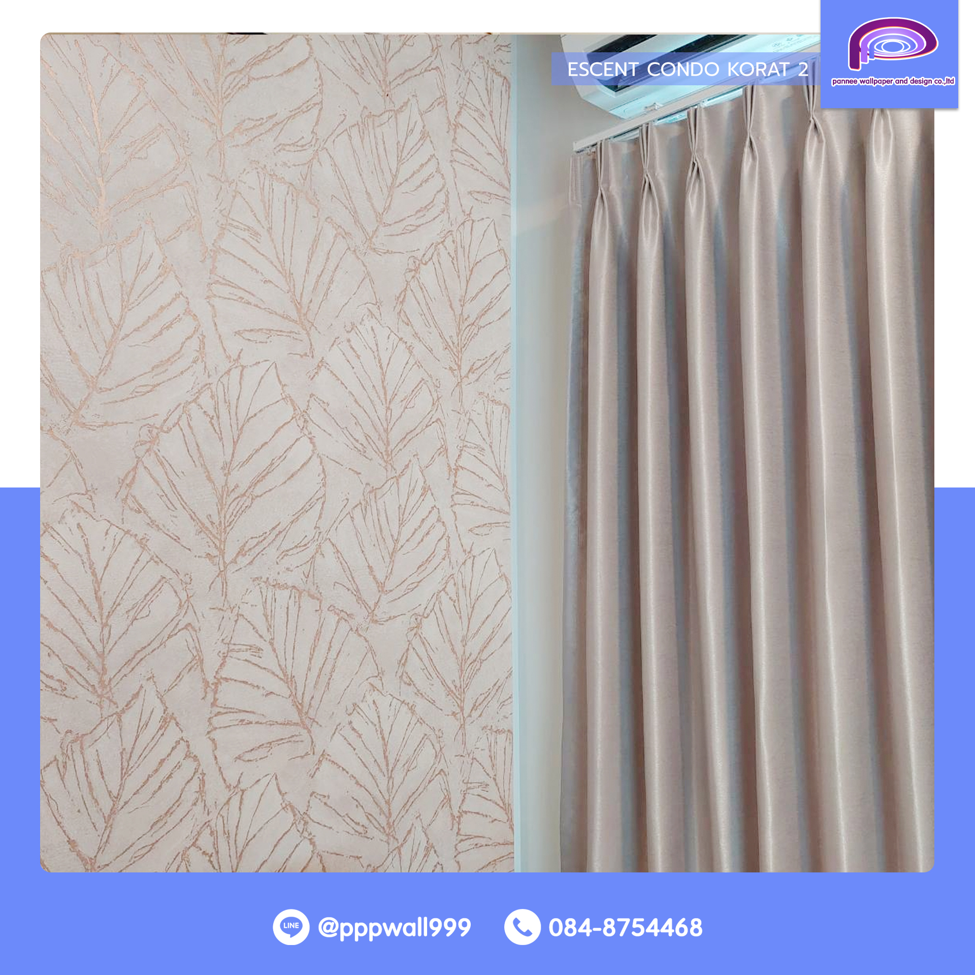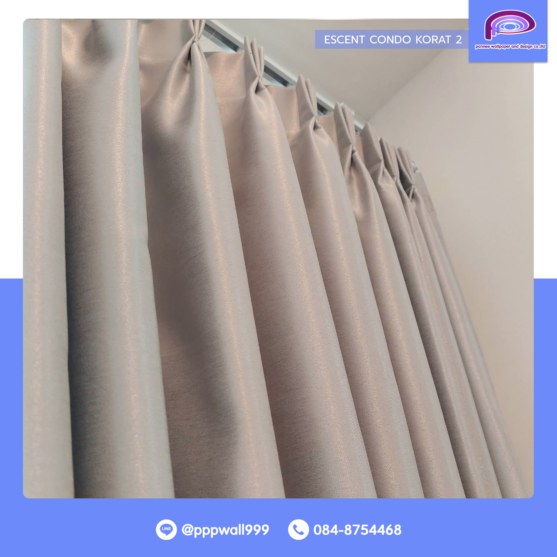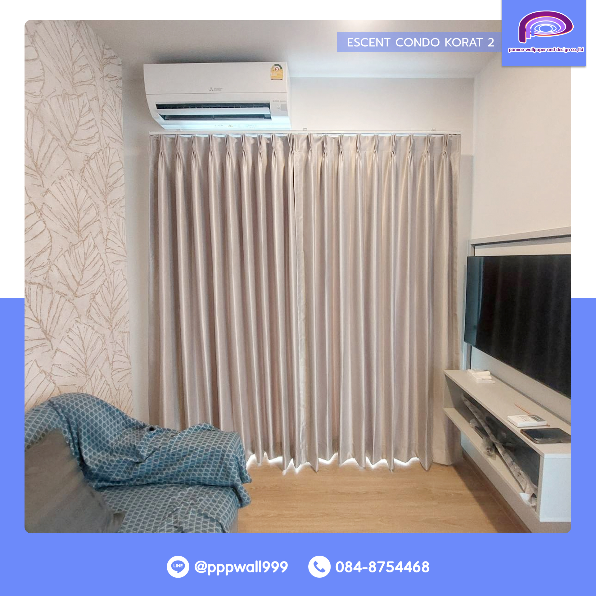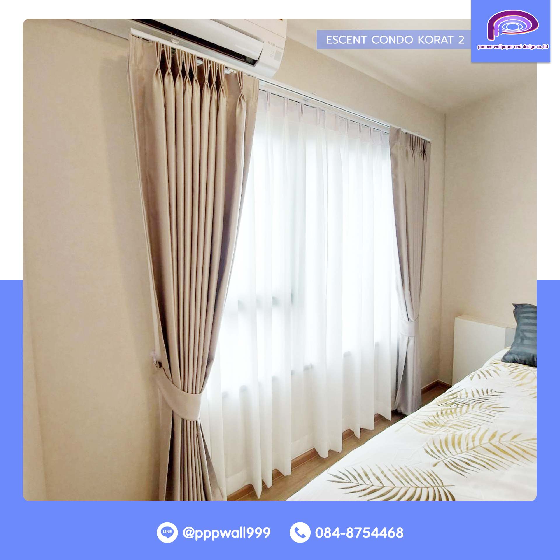 ผลงานติดตั้ง ม่านคอนโด | Escent condo Korat Type A งานติดตั้ง ผ้าม่าน และวอลล์เปเปอร์